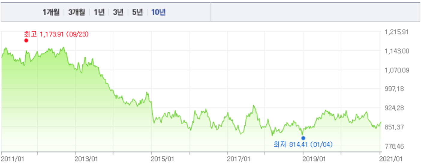 캐나다 달러가 가장 쌀때는 2019년 1월 4일 캐나다 1달러당 한국돈 814.41이었네요. 지금과는 약 56원정도가 쌌네요. 2019년 1월의 캐나다 달러는 정말 한숨만 나왔네요.물론 캐나다에 살고 있는 저한테는 요. 한국에 계신 분들에게는 캐나다 달러로 환전할 최적의 타이밍이었네요.
